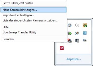 finden Sie nun im Infobereich von Windows. Jetzt muss die Kamera erst noch mit der Image Transfer Utility verknüpft werden, damit die Übertragung funktioniert. Dazu klicken Sie mit der rechten Maustaste auf das Symbol