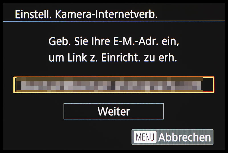 Geben Sie als nächstes die E-Mail-Adresse ein, mit der Sie bei Canon iMAGE GATEWAY bereits registriert sind. Wählen Sie anschließend die Schaltfläche Weiter.