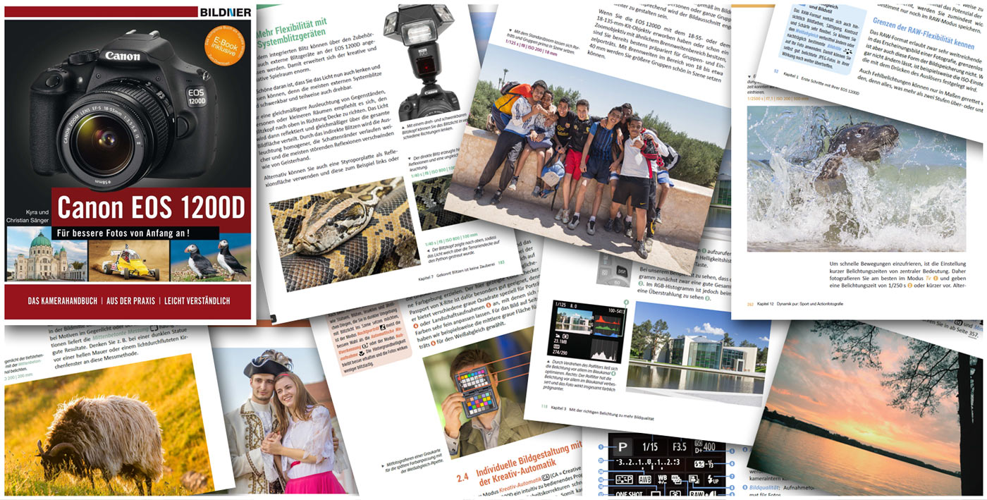 Mit Ihrer EOS1200D haben Sie sich jedenfalls eine Kamera zugelegt, die Ihnen deutlich mehr Möglichkeiten bietet, als gerade ein Einsteiger in die digitale Spiegelreflexfotografie vermutlich erst einmal angenommen hätte. Unter den Funktionen der kleinen EOS gibt es so viel Hilfreiches zu entdecken, dass es sich lohnt, systematisch an die Sache heranzugehen. Wie Sie sich im Labyrinth der Menüs und Knöpfe zurechtfinden und peu à peu das gesamte Potential Ihrer neuen fotografischen Begleiterin erschließen können, haben wir in unserem neuen Kamerahandbuch, erschienen im BILDNER-Verlag, systematisch erläutert. Nach kurzer Zeit werden Sie in der Lage sein, das Spektrum Ihrer fotografischen Aktivitäten deutlich zu erweitern und aufregende Ergebnisse zu erzielen, mit denen Sie anfangs möglicherweise so nicht gerechnet hätten. Damit Sie die Inhalte unterwegs noch flexibler verwenden können, ist das vollständige Buch zusätzlich und kostenlos auch als eBook abrufbar.