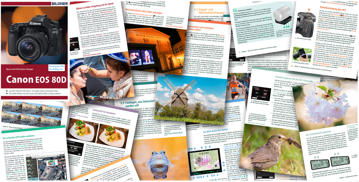 Die Canon EOS 80D hat es in sich, was das Aufnehmen bewegter Motive in Stand- und Filmbildern betrifft. Aber auch in den klassischen Fotobereichen macht sie eine extrem gute Figur. In unserem Buch zur Canon EOS 80D lernen Sie alle Funktionen Ihrer neuen Begleiterin bis ins Detail kennen, inklusive weiterführender Workshops. Lassen Sie sich durch praxisbezogene Beispiele zu eigenen Ideen inspirieren und reizen Sie das Potenzial ihrer High-end-Kamera voll aus. Dabei wünschen wir Ihnen jede Menge Spaß!