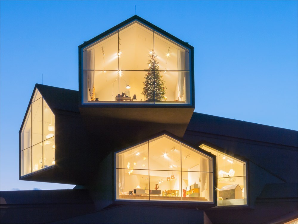 Mit der Vorgabe „Leuchtstoff“ ließ sich die Ansicht des Vitra-Hauses zur Zeit der blauen Stunde farblich ins rechte Licht rücken (1⁄6 Sek. | f8 | ISO 80 | M | 14 mm).