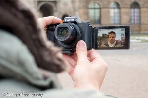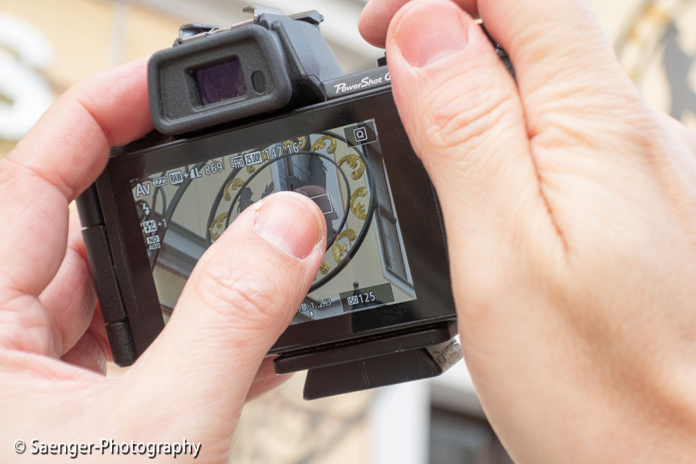 Mit der G5 X hat Canon das klassische Format der edlen PowerShot-G-Serie mit frischer Technik neu aufgelegt. Das erste, was uns an der G5 X nach dem Auspacken auffiel, war der relativ prominent auf der Kamera sitzende elektronische Sucher und das vorne am Gehäuse angebrachte vordere Wahlrad. Damit hebt sich die G5 X von den anderen PowerShots der G-Serie ab. Der Sucher kommt allen entgegen, die Ihre Kamera beim Fotografieren lieber auf die klassische Art und Weise vor das Auge halten. Gerade beim Verfolgen bewegter Motive oder wenn maximale Stabilität gefragt ist, ist der Sucher unsere erste Wahl.