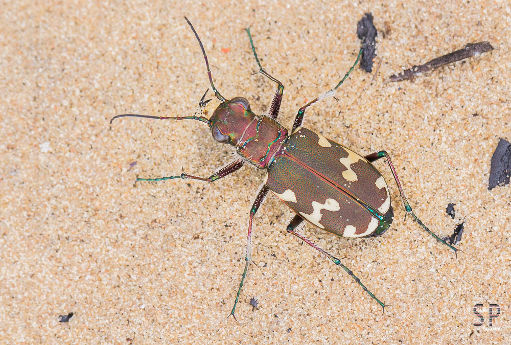 Gestern haben wir uns in Berlin mal auf die Suche nach dem hübschen Dünen-Sandlaufkäfer (northern dune tiger beetle, Cicindela hybrida) gemacht. Mit ein bisschen Geduld konnte ich den wunderbar schillernden Gesellen mit dem Makroobjektiv ganz nahe kommen.