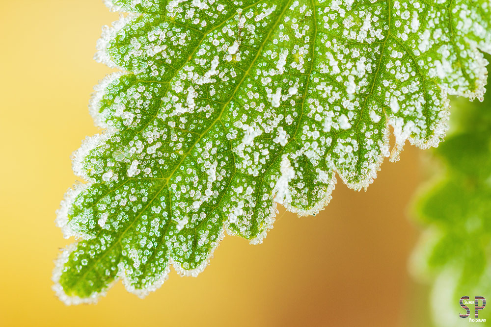 Eigentlich wollte ich nur mal eben schnell ein Bild mit Eiskristallen auf einem Brennnesselblatt zeigen, weil ich es so schön finde, wenn sich am frühen Morgen diese filigranen Strukturen gefrorenen Wassers auf dem Waldboden oder der Wiese bilden. Mit den Blättern führen die kleinen Kristalle fast schon einen strukturellen Wettstreit aus: wer ist schöner, das Blatt oder die Eiskörnchen? Fotografisch macht das auf jeden Fall echt was her, auch wenn man dafür zitternd auf dem schattigen, angefrosteten Boden herumrobben muss und die kalten Stativbeine einem fast ständig an den Fingern kleben bleiben. Aber egal, Naturfotografen sind ja einiges gewohnt.