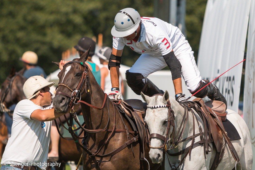 Dann konnte es mit dem handfesten Teil des Turniers losgehen, und wir hatten für je drei Spiele am Samstag und am Sonntag die Möglichkeit, uns zusammen mit den Pressefotografen, rund um das Spielfeld zu bewegen und zu fotografieren bis die Speicherkarte heiß läuft. Idealerweise waren auch die Pferdewechselzone und der Teambereich problemlos für uns betretbar, so dass wir auch den Tieren, Betreuern und Spielern optisch etwas näher kommen konnten, perfekt.