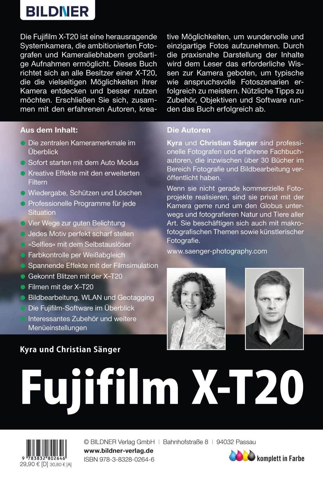 Die Fujilm lm X-T20 ist eine herausragende Systemkamera, die ambitionierten Fotografen und Kameraliebhabern großartige Aufnahmen ermöglicht. Dieses Buch richtet sich an alle Besitzer einer X-T20, die die vielseitigen Möglichkeiten ihrer Kamera entdecken und besser nutzen möchten. Erschließen Sie sich, zusammen mit den erfahrenen Autoren, kreative Möglichkeiten, um wundervolle und einzigartige Fotos aufzunehmen. Durch die praxisnahe Darstellung der Inhalte wird dem Leser das erforderliche Wissen zur Kamera geboten, um typische wie anspruchsvolle Fotoszenarien erfolgreich zu meistern. Nützliche Tipps zu Zubehör, Objektiven und Software runden das Buch erfolgreich ab.