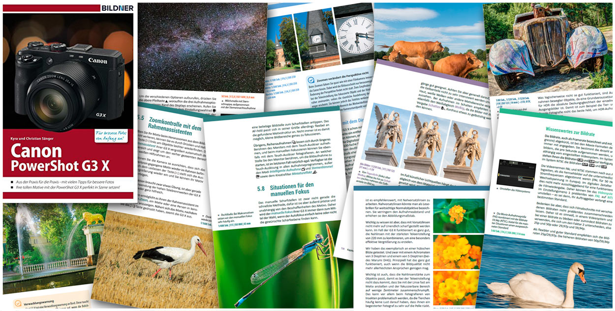 In unserem Buch zur PowerShot G3 X lernen Sie alle Funktionen Ihrer neuen Begleiterin anhand praxisbezogener Beispiele kennen. Lassen Sie sich zu eigenen Ideen inspirieren. Dabei wünschen wir Ihnen jede Menge Spaß!