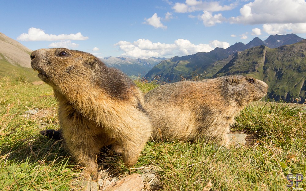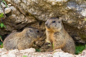 Dann haben wir aber auch noch probiert, weniger bestechliche Exemplare der großen Nager am, übrigens noch kostenlos zu befahrenden, Sellajoch aufzunehmen. Die sind natürlich viel scheuer und da mussten wir dann schon das 500mm-Objektiv aufs Stativ schrauben. Aber es hat sich definitiv gelohnt, es war uns gelungen, eine Familie mit neugierigen Jungtieren ausfindig zu machen, und wir verbrachten einige sehr intensive Stunden damit, diese lustigen aber auch sehr faszinierenden Tiere zu beobachten und zu fotografieren. Es geht also auch ohne Karotte… Aber zugegeben, auch wenn das Szenario nicht ganz so natürlich ist, die an den Menschen gewöhnten Murmler waren schon putzig, wie sie direkt vor einem Männchen machten um noch ein Stück Futter zu bekommen.