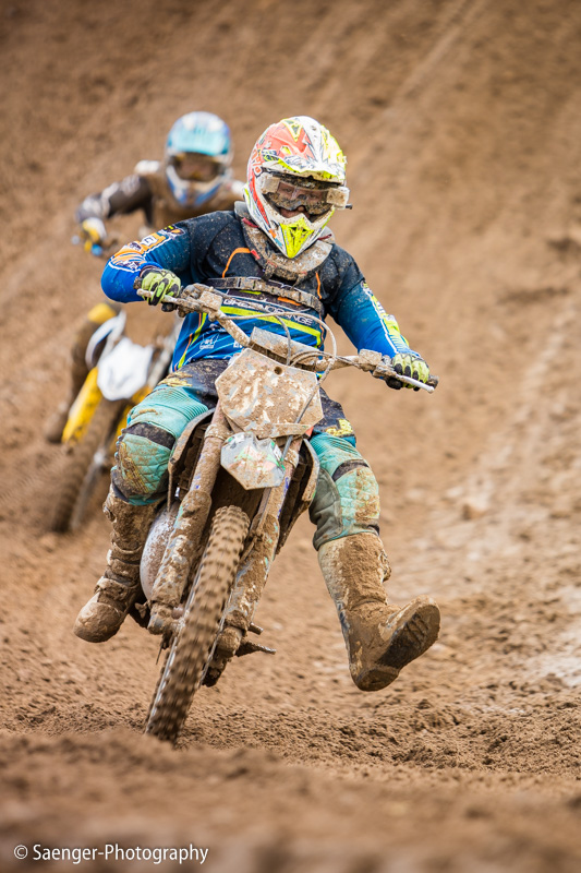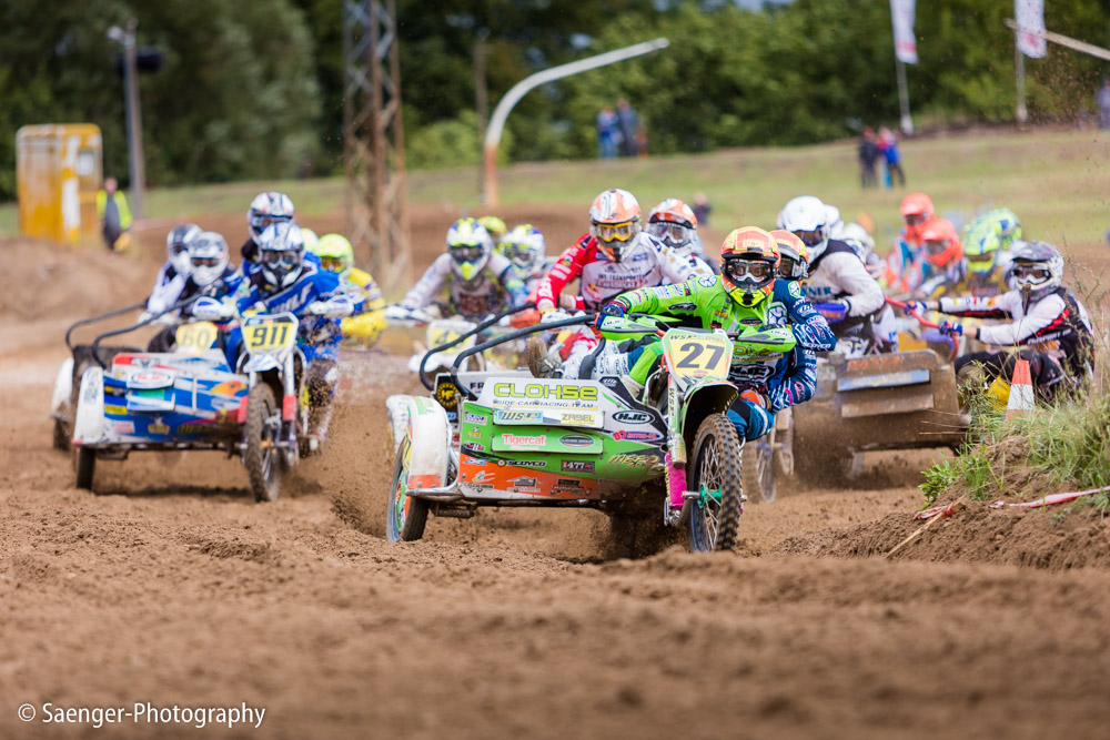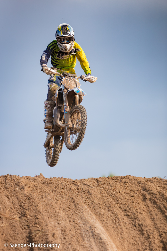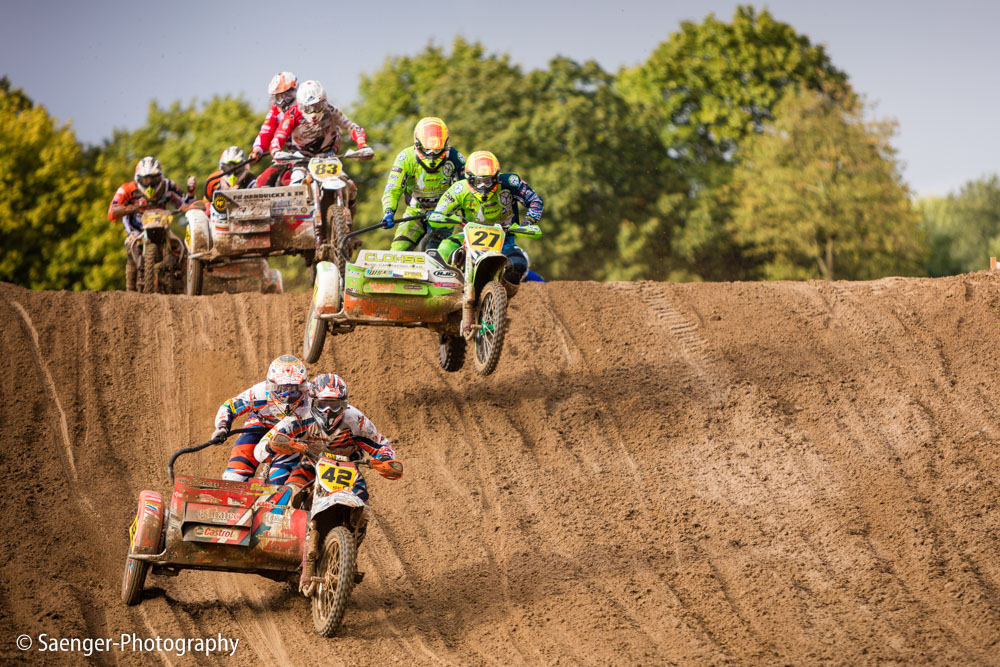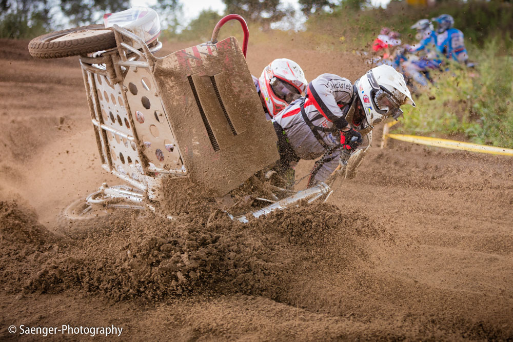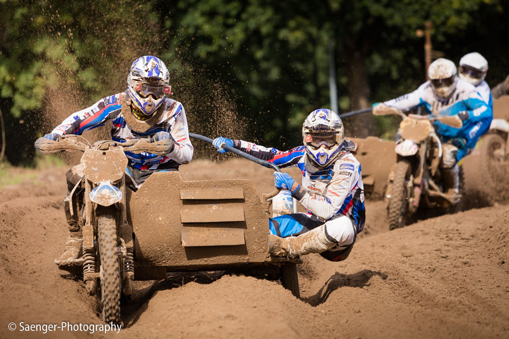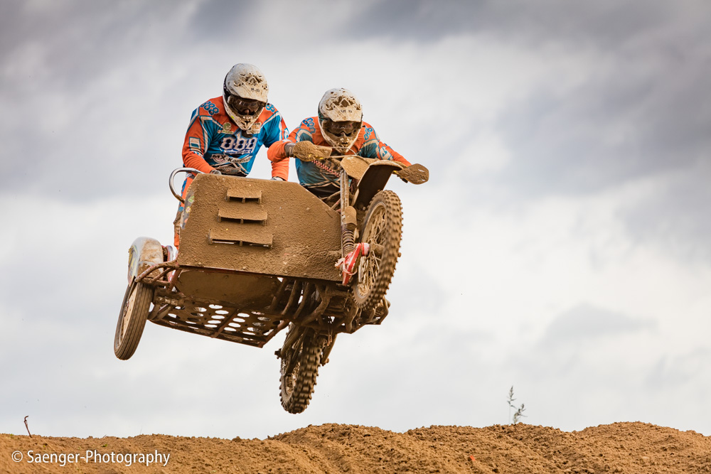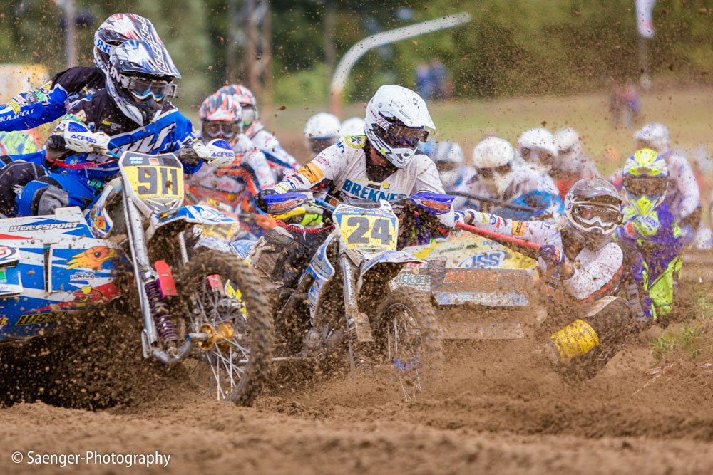 Letztes Wochenende haben wir es uns trotz äußerst unbeständigen Wetters nicht nehmen lassen, in ein Waldgebiet südwestlich von Berlin zu fahren. Dort liegt die Rennstrecke des MCC Schenkenhorst, auf der die Läufe zur Berlin-Brandenburgischen Meisterschaft im Motocross (LMBB 85), zum Deutschen Motocross-Pokal MX1 und das Finale der Deutschen Meisterschaft 2015 im Seitenwagen-Motocross stattgefunden haben. Das Wetter war richtig schön unberechenbar und wechselte alle Viertelstunde zwischen Sonne, bedrohlich aussehenden dunklen Wolkenbergen und den dazugehörigen heftigen Schauern, so dass sich die Rennstrecke in eine richtig schöne Matschkuhle verwandelte. Wir sahen am Ende dann auch entsprechend Dreckverkrustet aus, zumal die Fahrer beim Beschleunigen natürlich keine Rücksicht auf bedauernswerte an der Strecke im Schlamm stehende Fotografen nehmen konnten, und uns die nassen Sandklumpen nur so um die Ohren gezischt sind. Nun ja, wer will`s ihnen verdenken, Sie hatten schließlich eine Meisterschaft zu gewinnen.