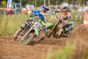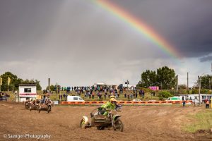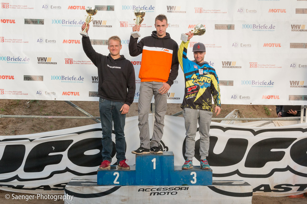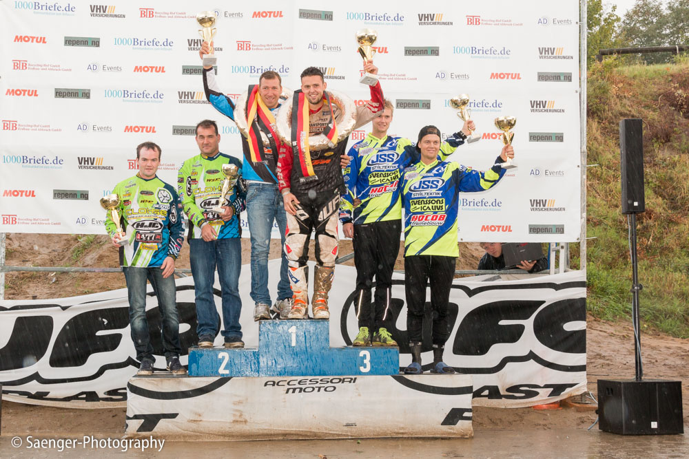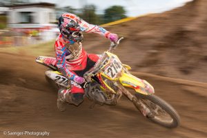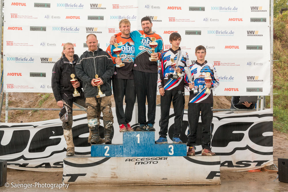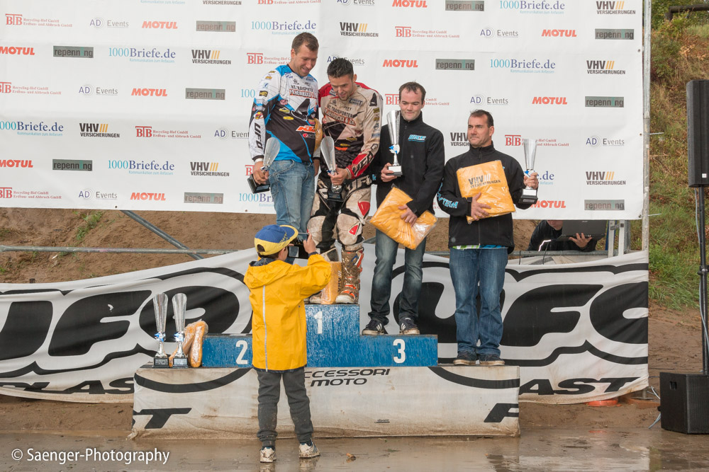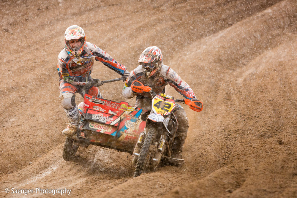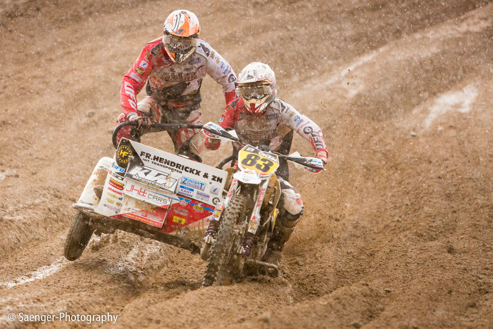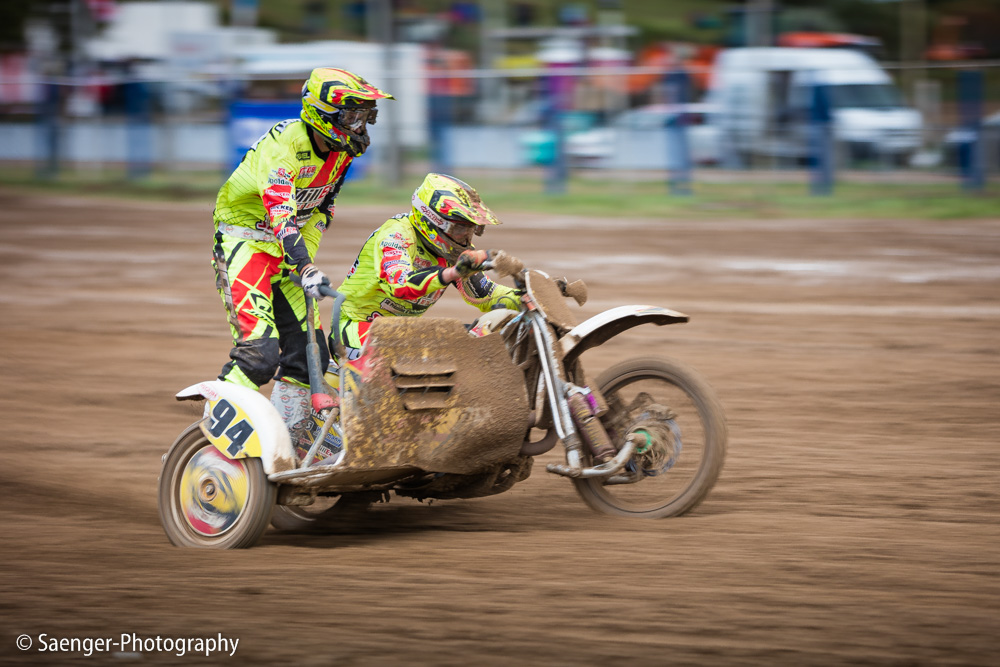 Letztes Wochenende haben wir es uns trotz äußerst unbeständigen Wetters nicht nehmen lassen, in ein Waldgebiet südwestlich von Berlin zu fahren. Dort liegt die Rennstrecke des MCC Schenkenhorst, auf der die Läufe zur Berlin-Brandenburgischen Meisterschaft im Motocross (LMBB 85), zum Deutschen Motocross-Pokal MX1 und das Finale der Deutschen Meisterschaft 2015 im Seitenwagen-Motocross stattgefunden haben. Das Wetter war richtig schön unberechenbar und wechselte alle Viertelstunde zwischen Sonne, bedrohlich aussehenden dunklen Wolkenbergen und den dazugehörigen heftigen Schauern, so dass sich die Rennstrecke in eine richtig schöne Matschkuhle verwandelte. Wir sahen am Ende dann auch entsprechend Dreckverkrustet aus, zumal die Fahrer beim Beschleunigen natürlich keine Rücksicht auf bedauernswerte an der Strecke im Schlamm stehende Fotografen nehmen konnten, und uns die nassen Sandklumpen nur so um die Ohren gezischt sind. Nun ja, wer will`s ihnen verdenken, Sie hatten schließlich eine Meisterschaft zu gewinnen.