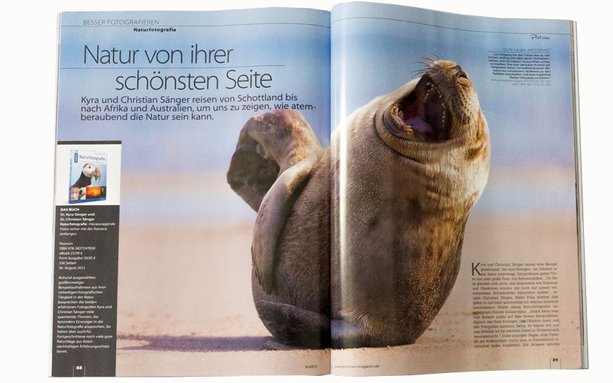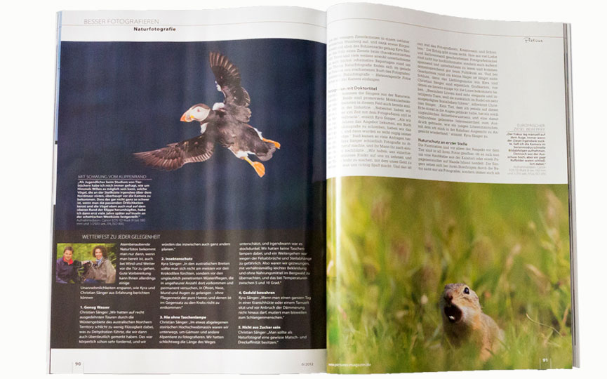Die Aufmachung des Artikels selber gefällt uns auch außerordentlich gut, weil die Bilder in Pictures sehr schön großflächig abgedruckt werden, was den Gesamteindruck derartiger Naturbilder sehr zugute kommt. Also, vielen Dank für die tolle Umsetzung an Pictures und an Angela Heider-Willms, die sich maßgeblich um den Artikel gekümmert hat.