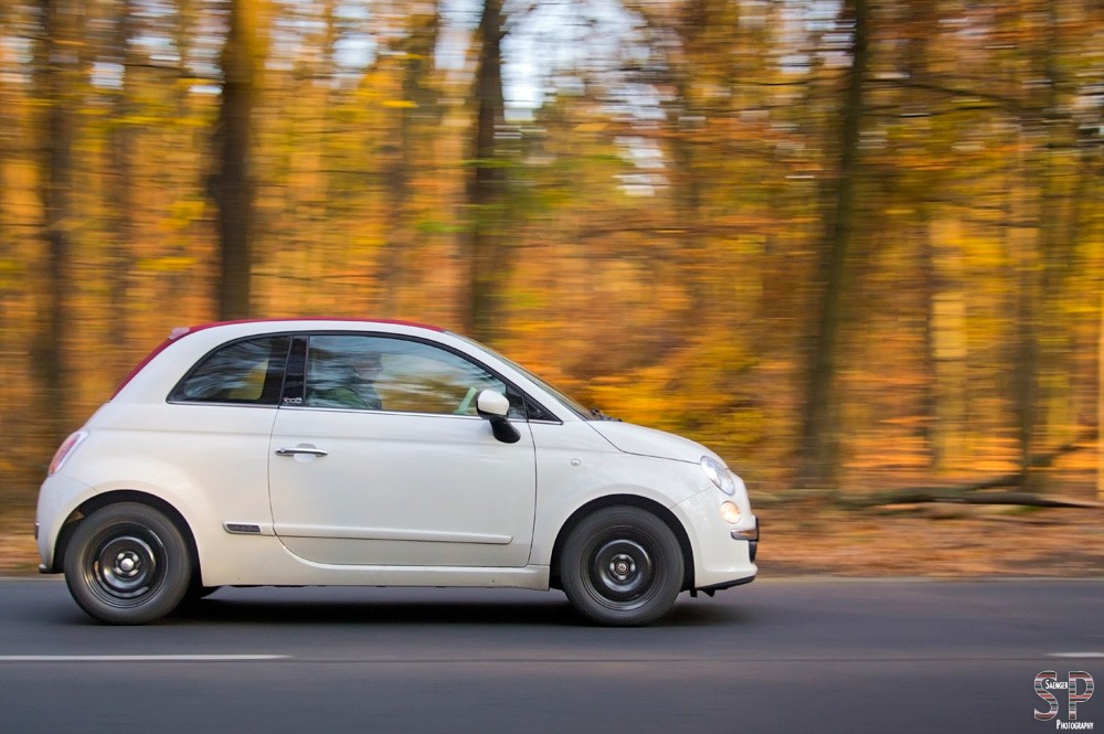 Die schnelle Serie machte es möglich, gleich beim ersten Versuch ein optimales Foto zu erhalten, bei dem das Auto scharf und die Umgebung schön verwischt erscheint (1⁄100 Sek. | f5 | ISO 200 | P | 21 mm | Serienaufnahme Elektronisch (Hi) | aus der Hand gezogen).