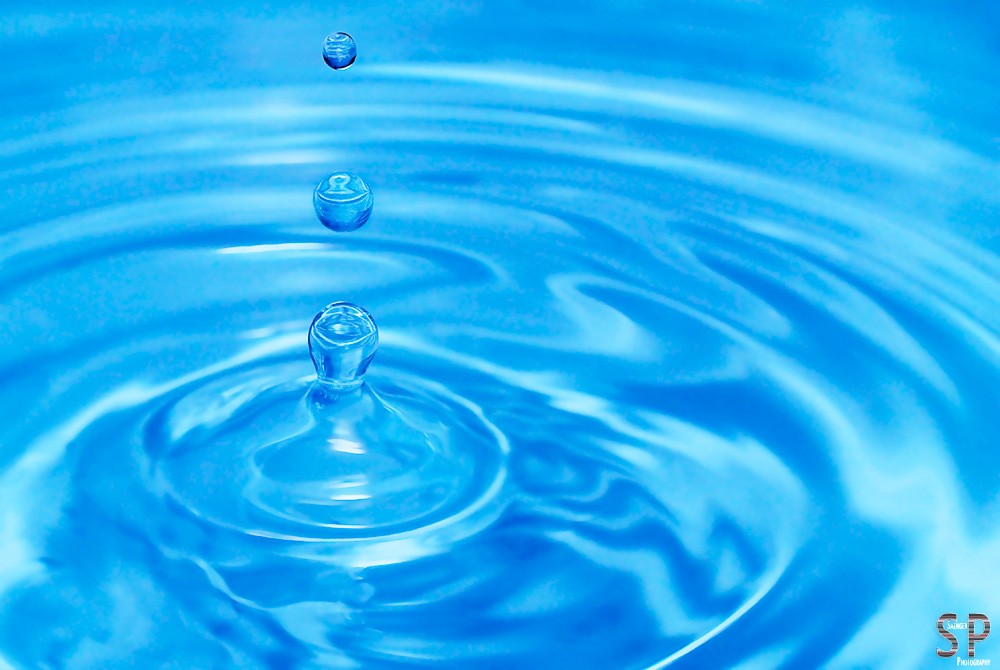 Aus dem Wasser aufspringende Tropfen, eingefroren durch den kurzen Blitzimpuls am Ende der halbsekündigen Belichtung (0,5 Sek. | f8 | ISO 100 | M | 30 mm | Stativ | Fernauslöser | kamerainterner Blitz im Modus REAR mit Blitzbelichtungskorrektur auf –3 | Sigma EF-500 DG Super mit Softbox und manueller Leistung von 1⁄64).