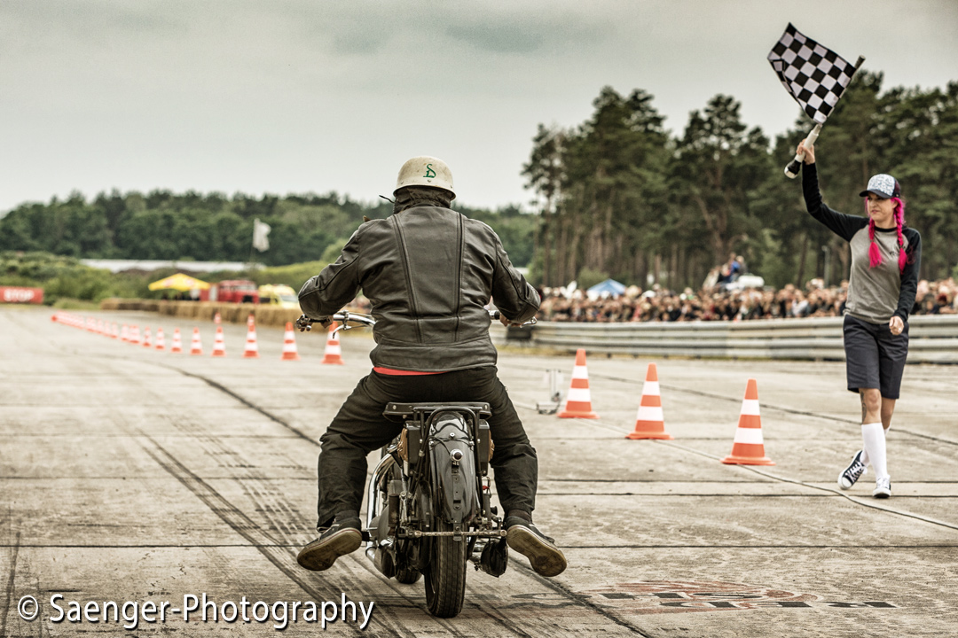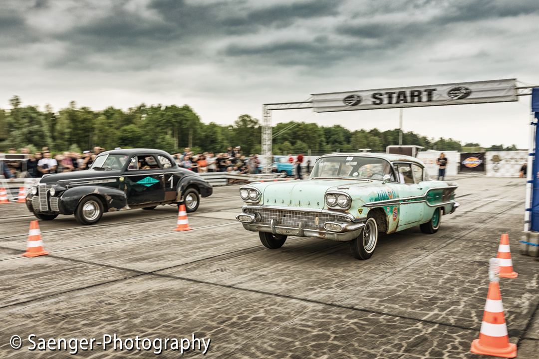 Dabei sind wir fotografisch voll auf unsere Kosten gekommen. Donnernde Motoren, spektakuläre Starts, der ein oder andere Burnout und bezaubernde Startergirls, die die teils rostigen Muskelkisten und ihre abenteuerlichen Fahrer jederzeit mit Starterfahne und einer leichten Handbewegung unter Kontrolle hatten. Ein irres Spektakel. Hier ein paar Bilder der tollkühnen Piloten mit ihren rasenden Kisten und heiße Motorräder der unterschiedlichsten Altersklassen waren natürlich auch vertreten. Na denn, jetzt ein Bier, ein Burger und Keep on Rollin‘.