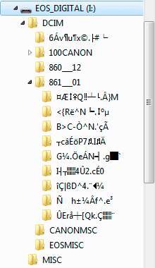 Zuhause beim Laden der Bilder von der Speicherkarte auf den Computer kann die „Überraschung“ dann aber leider doch größer ausfallen als erwartet. Uns präsentierte sich die Ordnerstruktur so wie im Bild rechts gezeigt. Teils kryptische Zeichenfolgen waren da zu lesen, der größte Teil der Bilder wurde nicht mehr als solche angezeigt und die meisten Aufnahmen schienen verloren. Panik, alles weg !!! Bei solch einem Kaudawelsch kann man wahrlich von inkonsistenten oder korrupten Daten sprechen, vermutlich ausgelöst durch einen Speicherfehler der Kamera aufgrund der Kälte und des leeren Akkus.